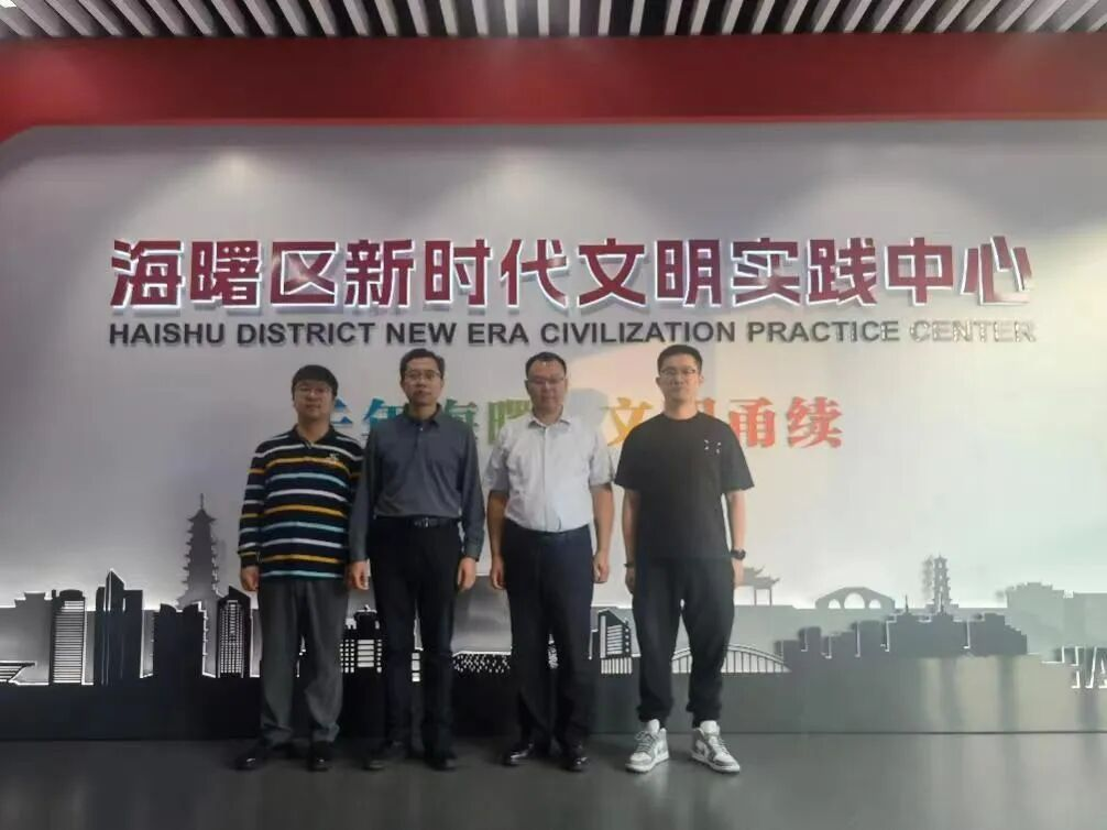 10月30日上午,文法学院党委书记刘玉明、副院长(主持工作)王力平、社会学系主任闫金山和社会工作硕士教育中心副主任侯荣庭深入宁波市海曙区社会工作协会、宁波市海曙区新时代文明实践中心,实地了解海曙区社会工作的发展现状、实践特色和发展规划,双方就社会组织岗位需求及吸纳毕业生就业能力等进行充分交流,并就下一步人才培养、实践教学达成共识。
