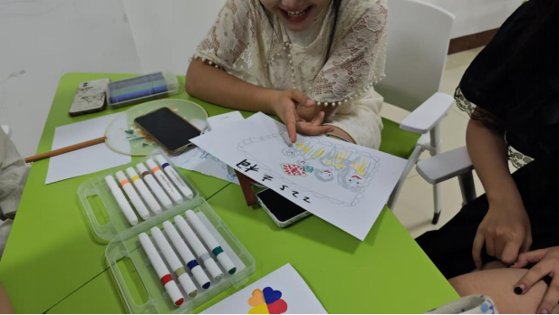 游戏暖场后,各宿舍进入创意迸发的绘画环节。每位成员领到一张白纸与一盒彩笔,进行“个性胸卡”创作。大家专注投入,将姓名、爱好或独特的个人标识融入方寸之间,一枚枚独一无二的胸卡成为展示自我的闪亮名片。