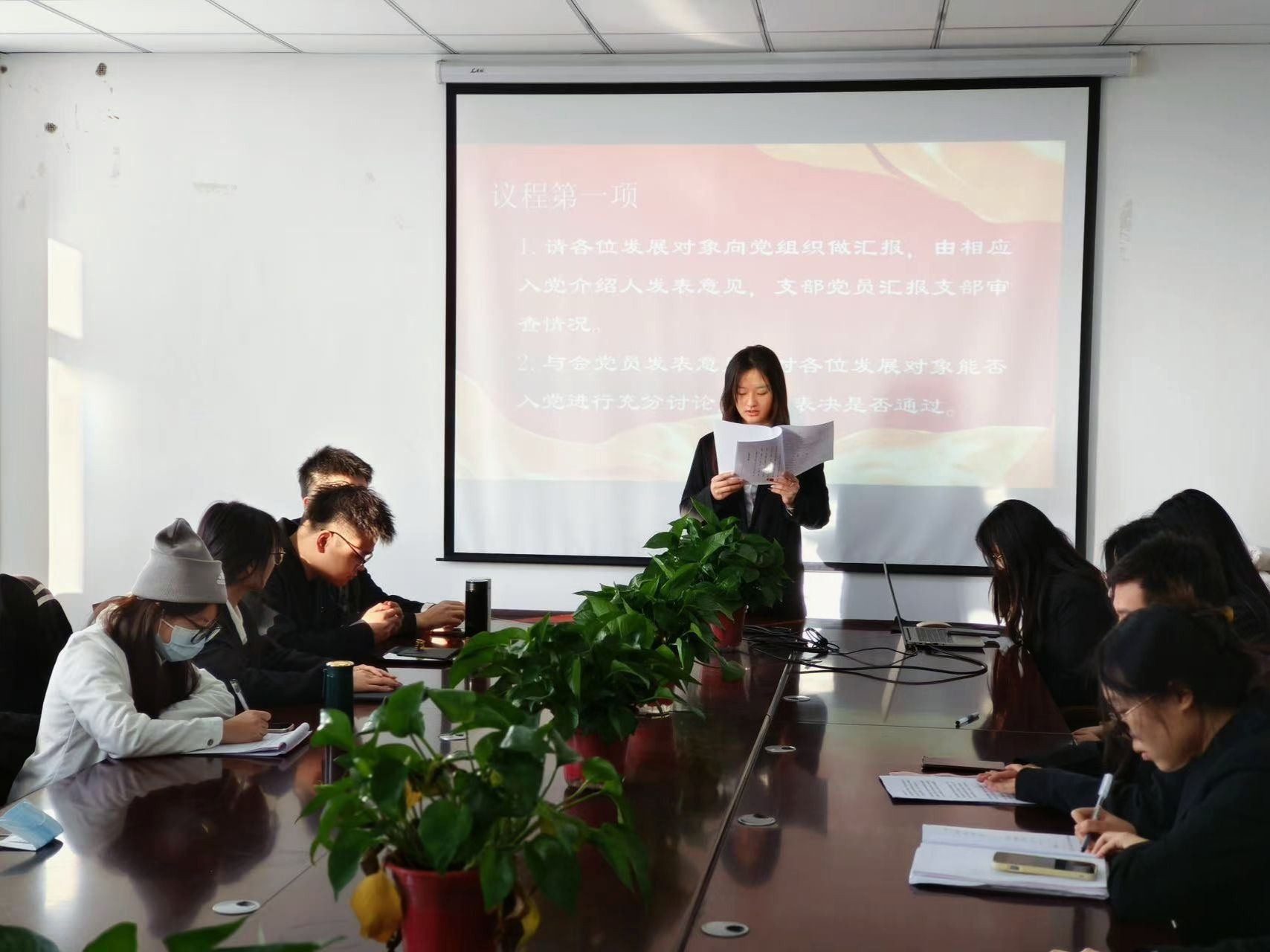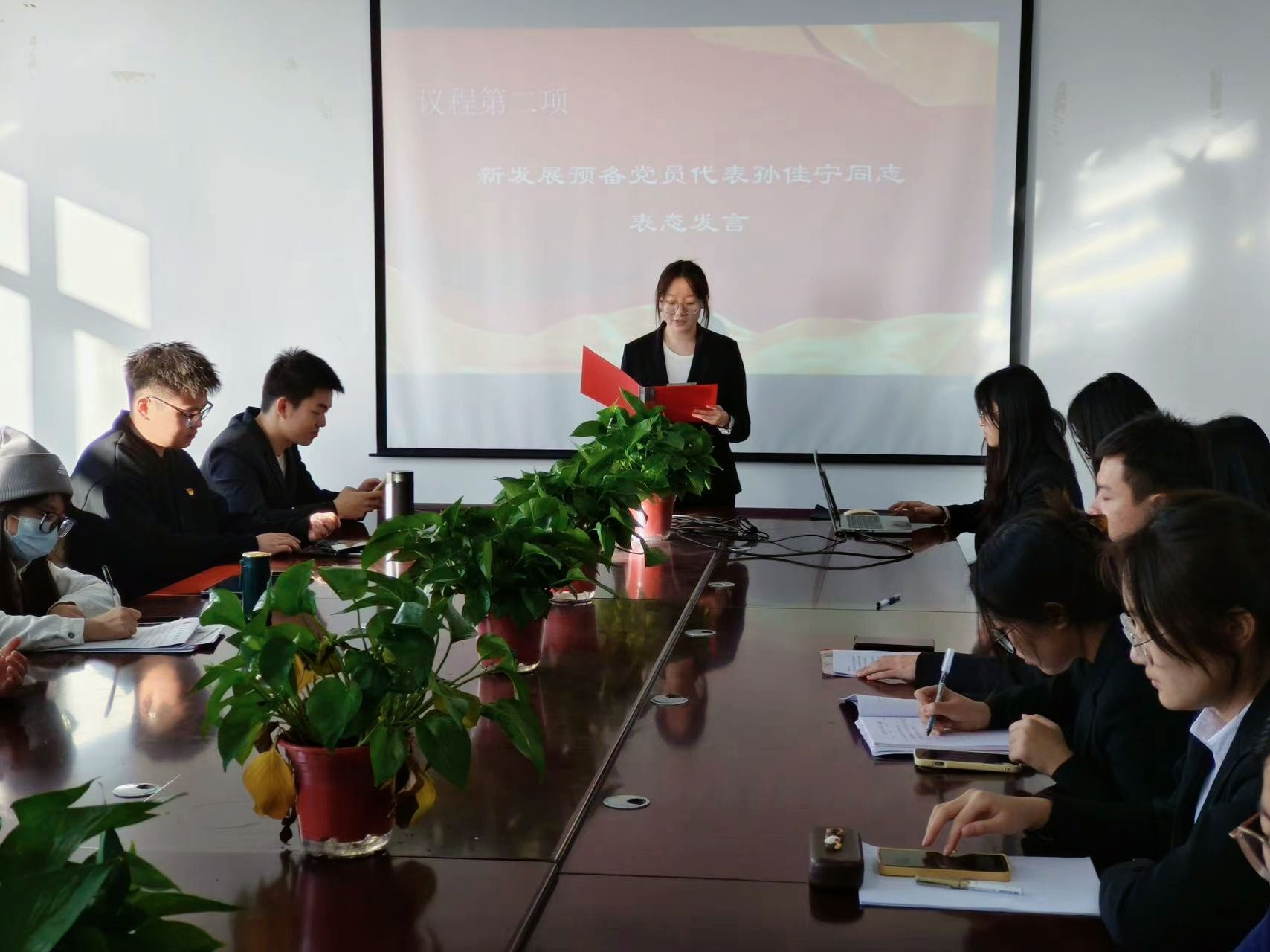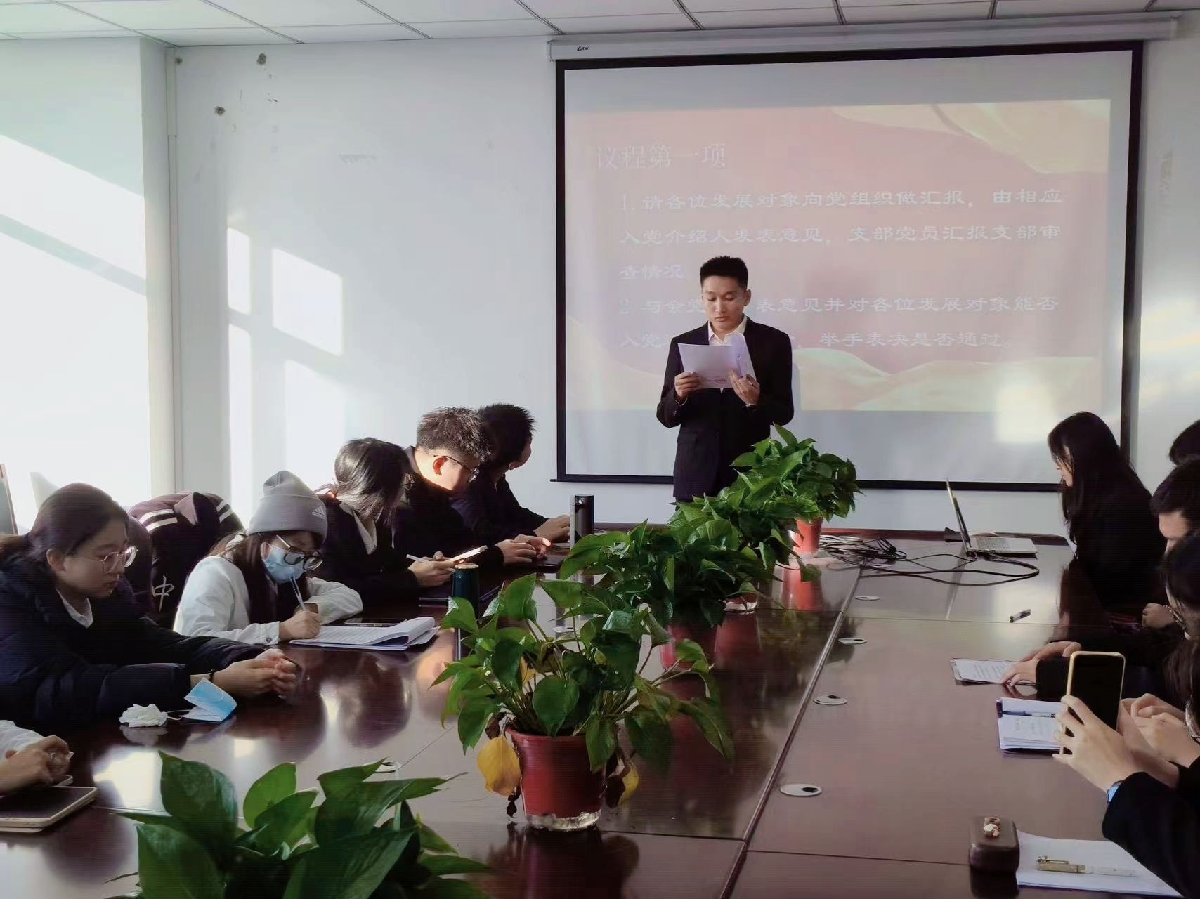 2025年12月1上午9点,文法学院本科生第二党支部在文华楼B1503召开预备党员接收大会。