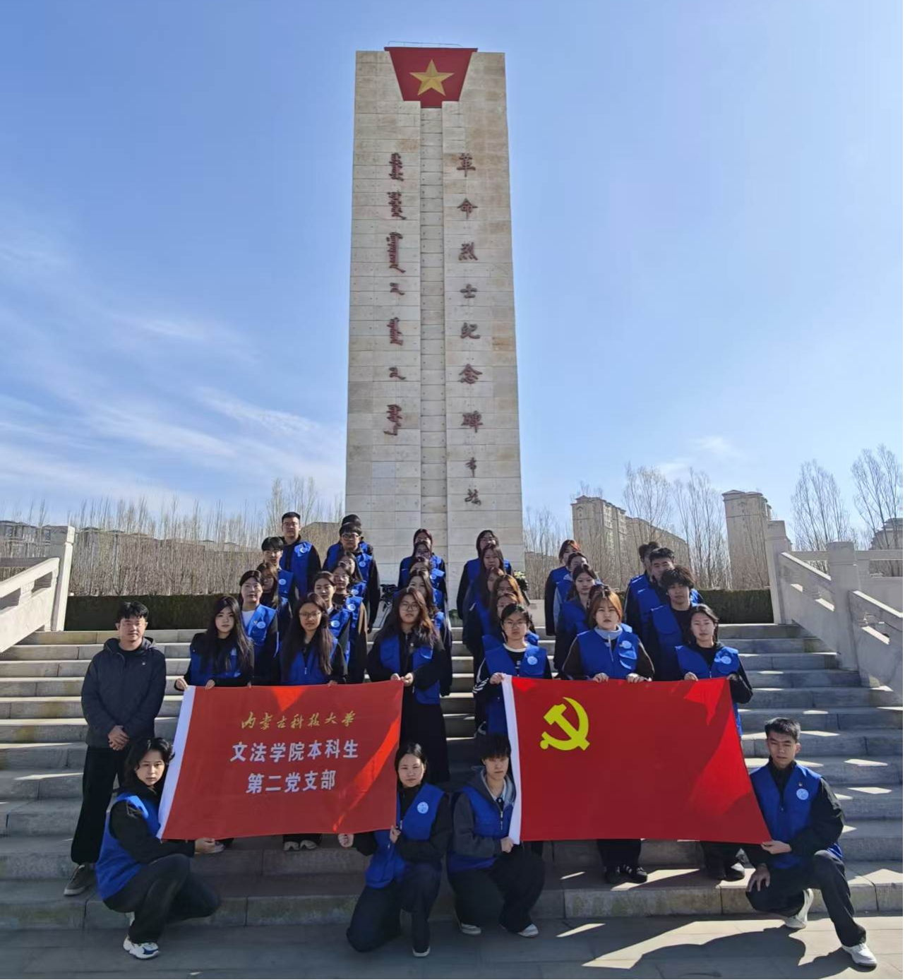 清明将至,为缅怀革命先烈、传承红色精神,强化党员与青年学生的爱国主义情怀,2026年3月31日,文法学院本科生第二党支部联合本科生第一党支部、学院团委及学生会开展清明祭先烈主题活动。本次活动由张国栋老师带队,全体参与人员共同追寻红色足迹,缅怀革命先辈。
