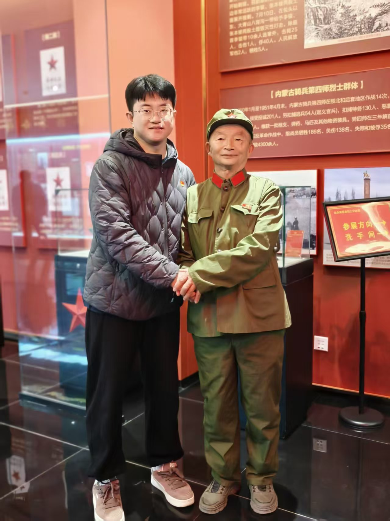 最后,全体人员一同前往革命纪念馆瞻仰参观。在参观过程 中,大家有幸偶遇退伍老兵,聆听老兵讲述军旅岁月与革命故事, 进一步加深了对革命历史的认知,真切感悟到如今幸福生活的来之不易。